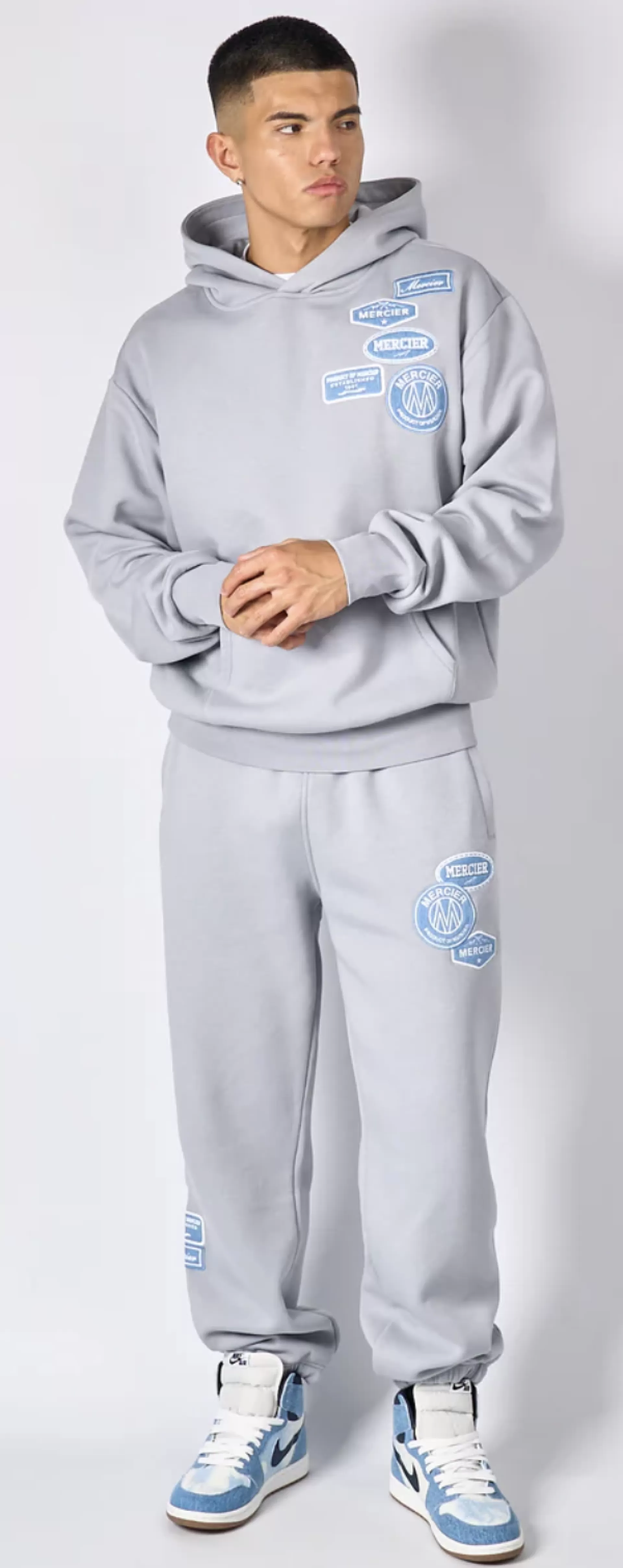 Smoke Grey Denim Badge Hoodie - Jogger